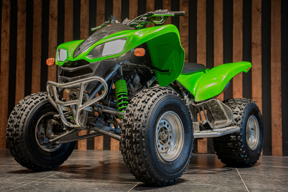 Kawasaki KFX 700 uit 2006. Deze quad is gebruikt, maar technisch volledig in orde en heeft zijn onderhoud gehad. Voorzien van een landbouwkenteken. Krachtige en betrouwbare machine, geschikt voor zowel werk als recreatief gebruik.