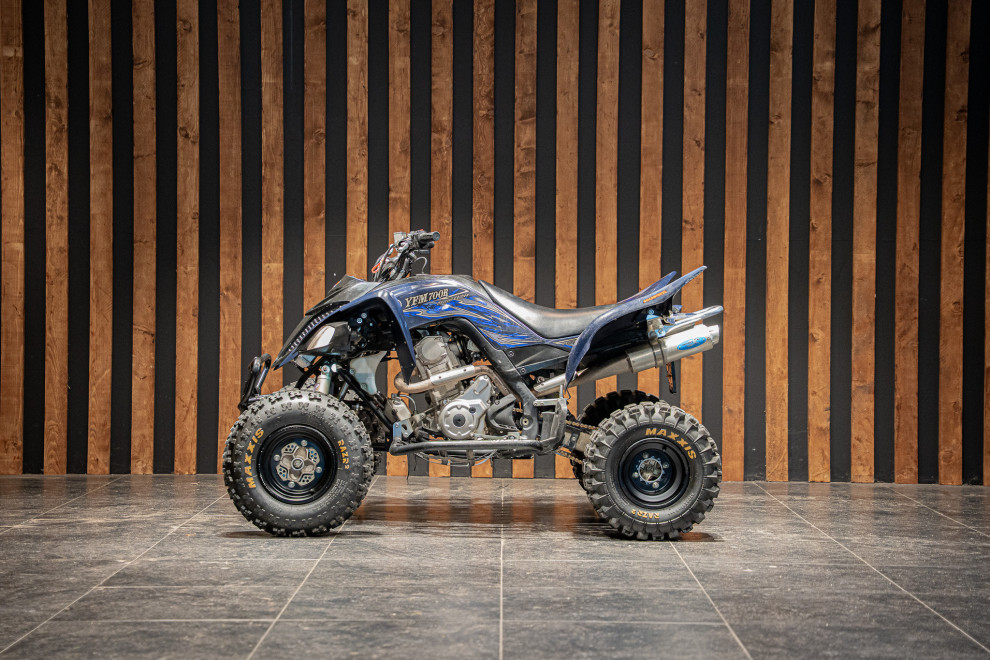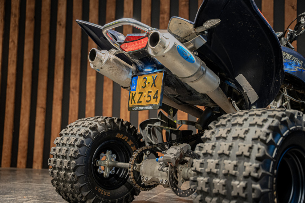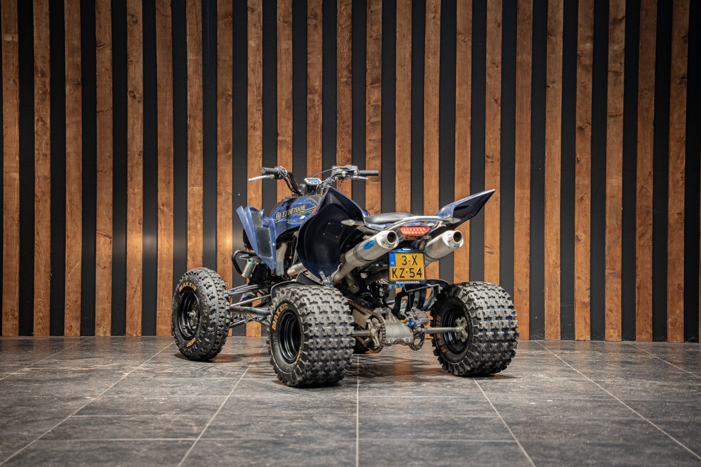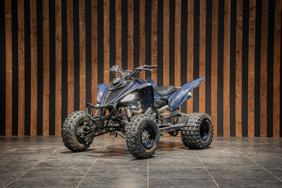 Deze Yamaha Raptor 700R uit 2018 is geen standaard quad – met nerfbars voor extra grip en controle, én een dubbele uitlaat die niet alleen brult maar ook presteert, is dit een beest op wielen.