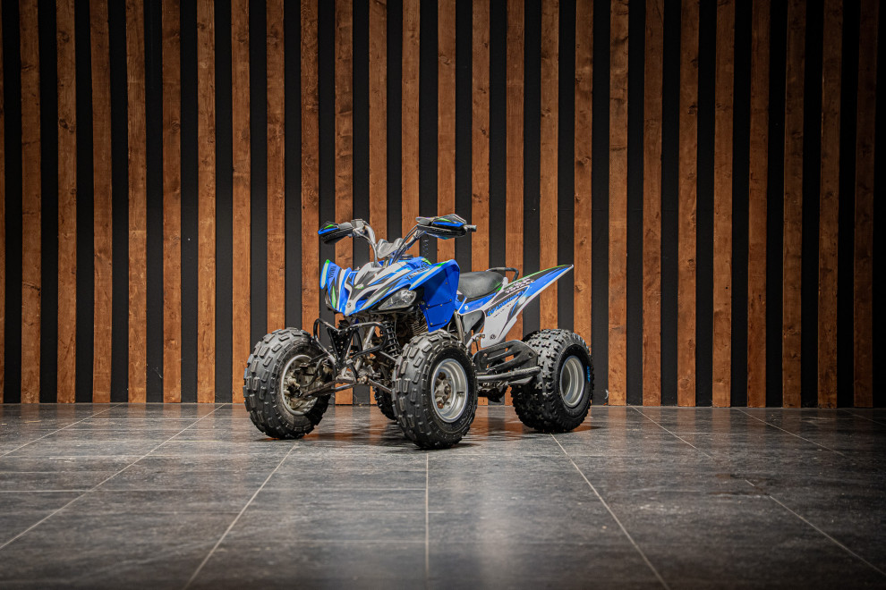 Deze Yamaha YFM250R uit 2013 verkeert in nette gebruikte staat en is technisch helemaal klaar gemaakt, zodat je zonder zorgen kunt opstappen en genieten. De 250cc-motor levert vlotte, goed controleerbare prestaties die perfect passen bij recreatief gebruik en sportief crossen. Dankzij het lichte en wendbare chassis voelt de quad direct en speels aan.