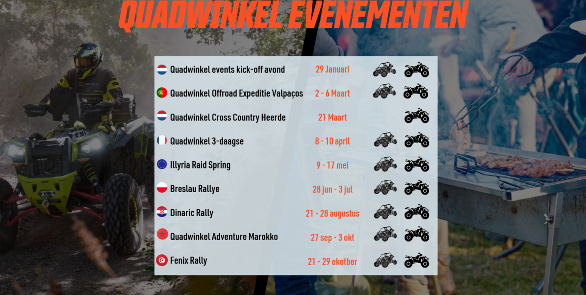 De evenementenkalender voor 2026 is bekend en zit boordevol actie, avontuur en unieke activiteiten voor zowel quad- en side-by-side rijders. De eerste inschrijvingen zijn binnen!