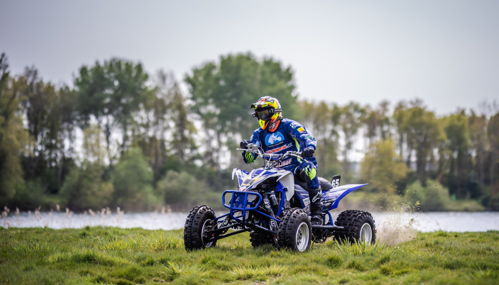 Al doende leert men. Dus toen Evert het quad rijden steeds meer onder de knie kreeg, zocht hij een grotere uitdaging dan navigeren met een rits kinderen achter zich aan: met een bij Quadwinkel aangeschafte Kawasaki KFX 700 ontdekte hij het serieuze werk: crossen op een crossterrein en lekker rijden op de weg. “Vervolgens heb ik in augustus 2012 bij Quadwinkel mijn eerste Can Am Renegade XXC 1000R in geel/zwarte kleur gekocht. Daarmee reed ik zowel offroad ritten, strandraces, de Oost Europa Rally in 2014 én crosswedstrijden. Dat ging best goed, zelfs al was de Can Am daar eigenlijk iets minder geschikt voor.” Toch heeft Evert er voor het betere crosswerk in 2017 uiteindelijk een snelle Yamaha YFZ450R crossquad bij aangeschaft.