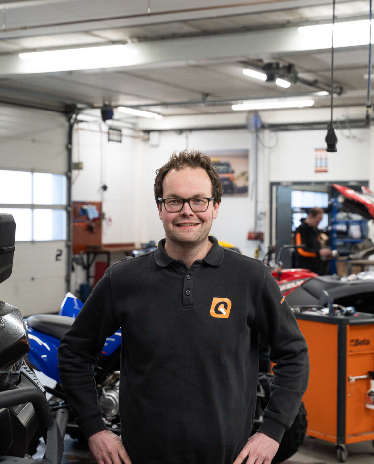 Zijn drijfveer? De beste service leveren voor de klant. Dat betekent niet alleen een quad die technisch in orde is, maar ook duidelijke afspraken, strak georganiseerde processen en geen verrassingen achteraf. Of het nu gaat om onderhoud, diagnose of maatwerkoplossingen: hij denkt altijd vanuit de gebruiker. Want echte service stopt niet bij de sleuteloverdracht, die begint daar pas.
